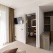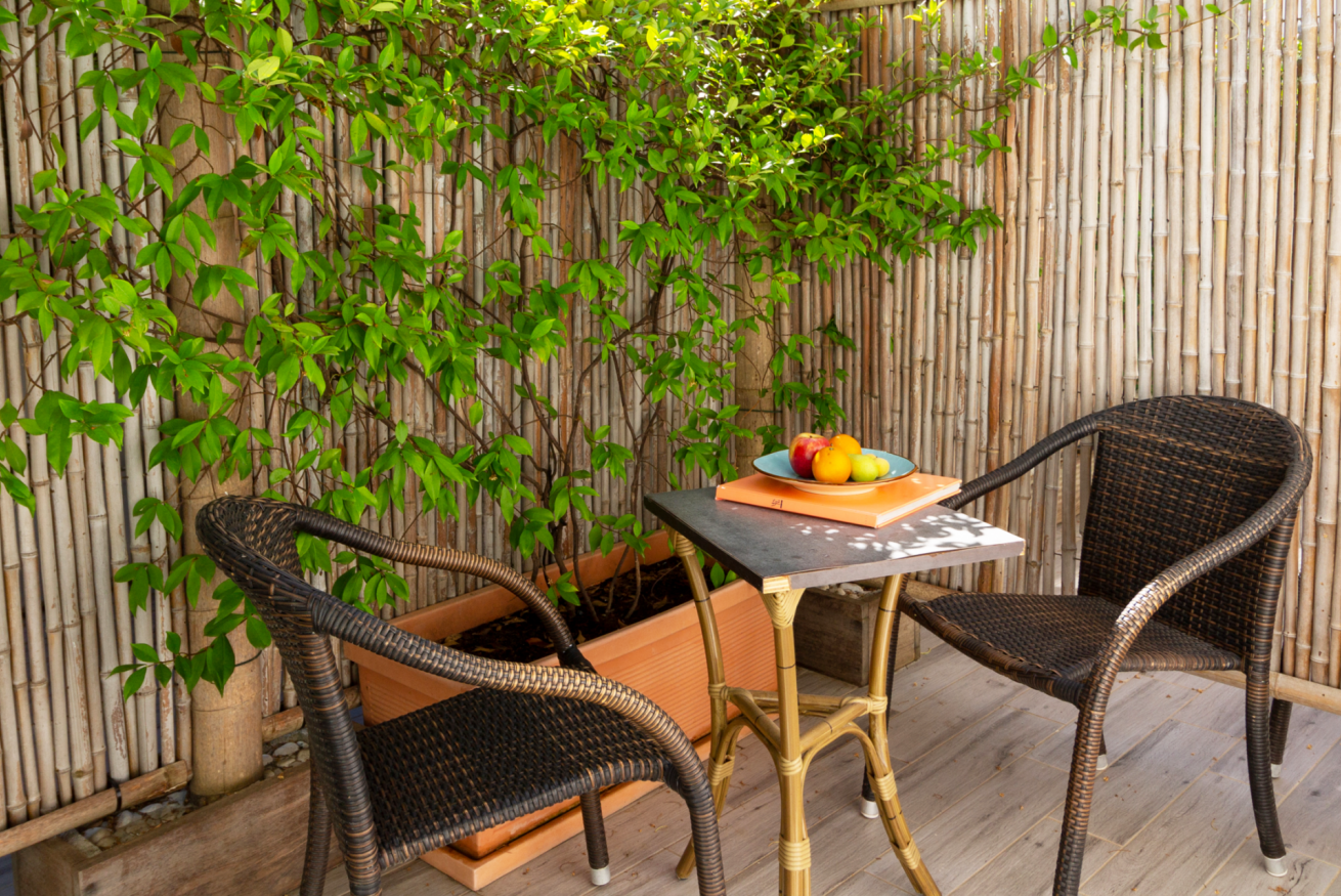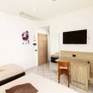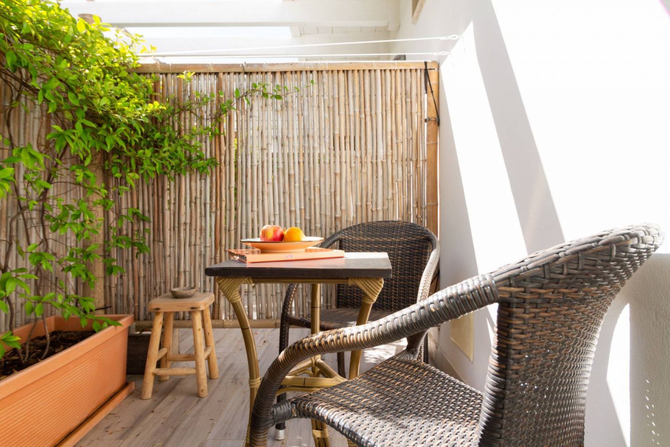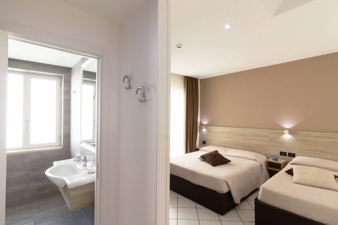 Camera con balcone senza vista mare oppure con terrazzino interno. Finemente arredata e accogliente. Dispone di letto matrimoniale e letto singolo che all’occorrenza si trasforma in letto a castello. Situata al primo piano, senza ascensore. Può ospitare 3 o 4 persone. – 17 mq.
